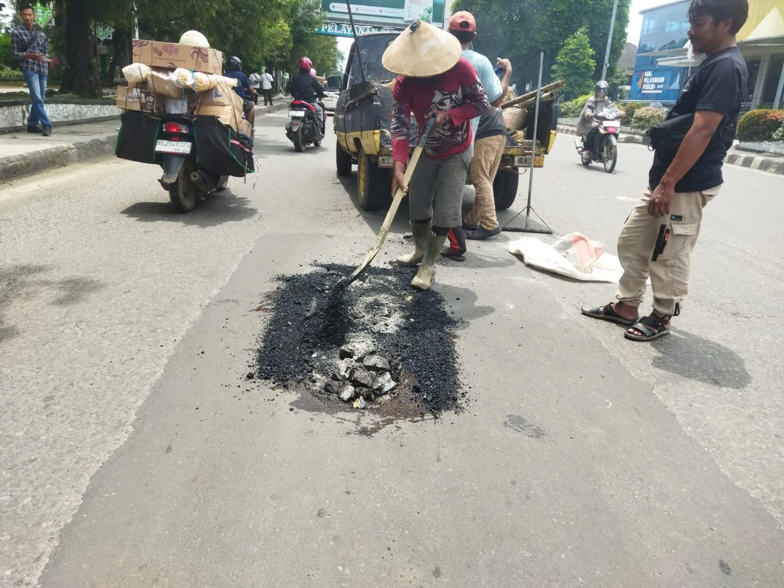 Metro — Lubang menganga di Jalan Jend. Sudirman, tepatnya di depan GSG Bumi Sai Wawai dan Taman Merdeka, Kecamatan Metro Pusat, Kota Metro di kritik warga. Kondisi jalan berlubang yang nampak mata tersebut seolah terkesan di liarkan begitu saja. Padahal, lubang di jalan setempat dinilai warga berbahaya dan mengancam keselamatan pengguna jalan. Bambang, pengguna jalan itu menyampaikan kritiknya. Menurutnya, kondisi jalan berlubang sangat mengganggu pengguna jalan yang hilar-hilir melalui jalan yang tidak jauh dari kantor Walikota Metro tersebut. “Ada beberapa titik lubang di jalan itu. Lubangnya dalam dan berbahaya. Rusaknya…
