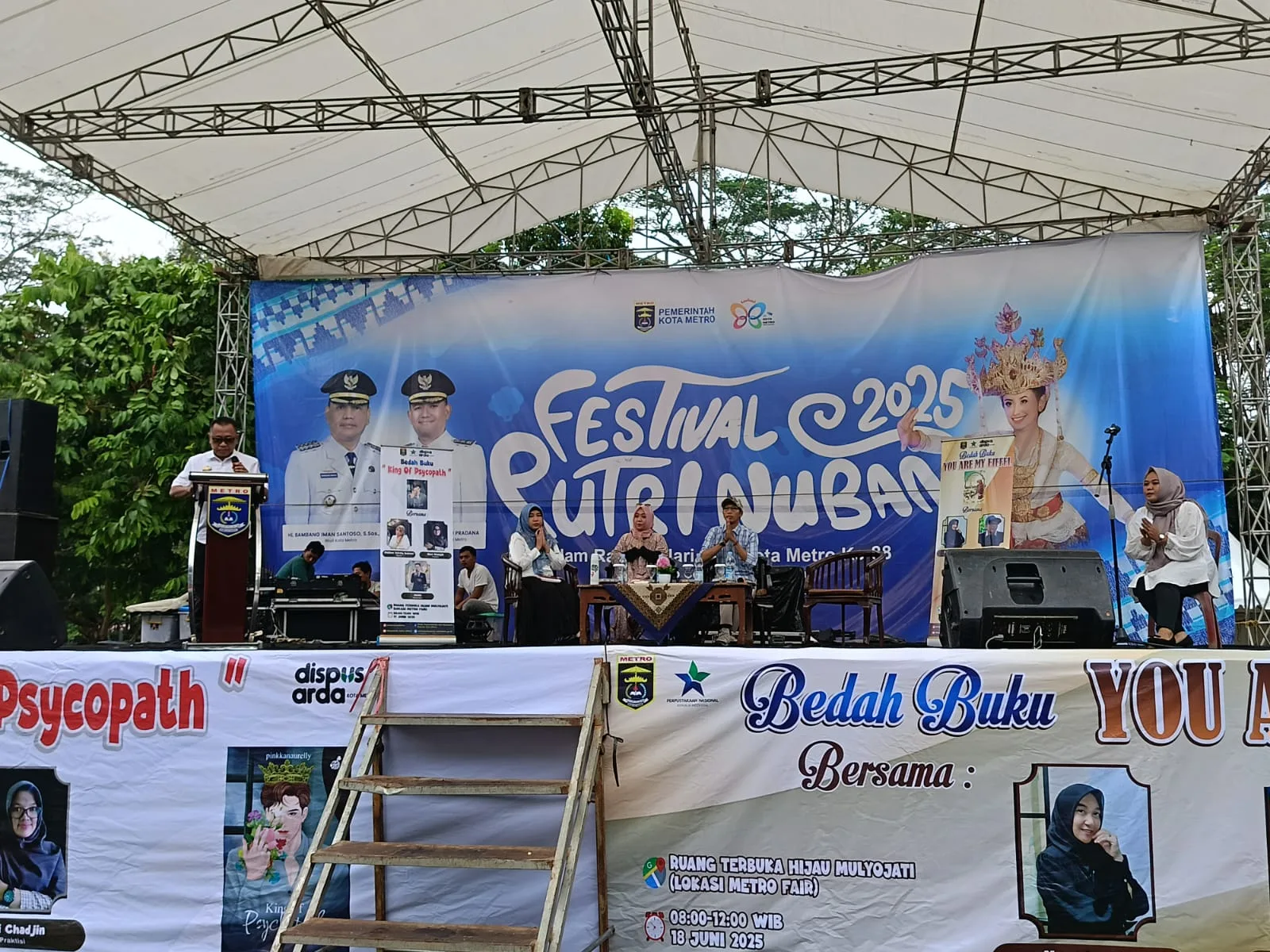 Metro — Dinas Perpustakaan dan Kearsipan Daerah (Dispusarda) Kota Metro menggelar kegiatan bedah buku. Acara berlangsung di Ruang Terbuka Hijau, Mulyojati, Metro Barat, Rabu (18/6/2025).