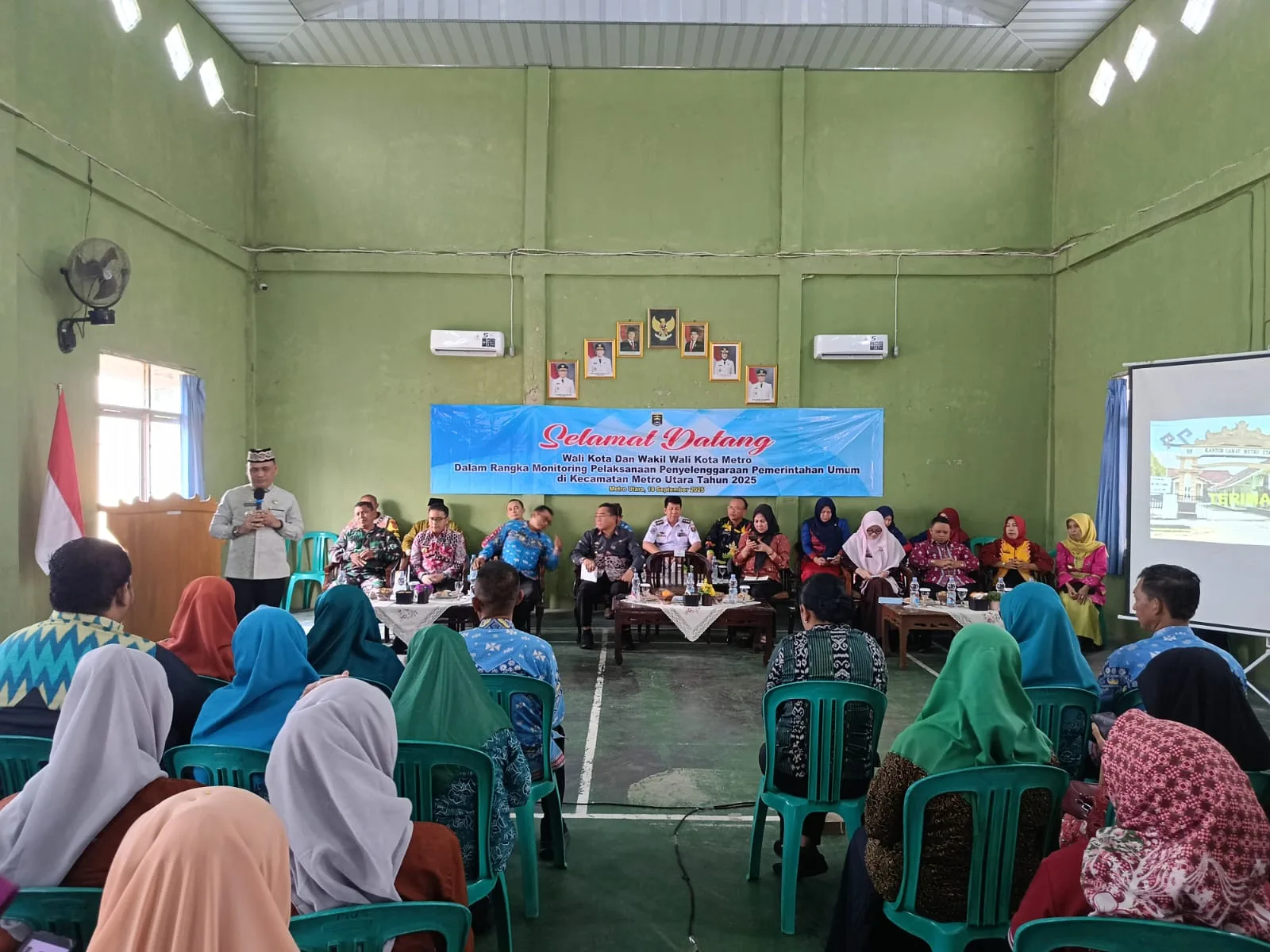 Metro — Dalam rangka evaluasi kinerja pemerintahan, Walikota Metro memberikan sambutan pada kegiatan monitoring di tingkat kecamatan dan kelurahan.